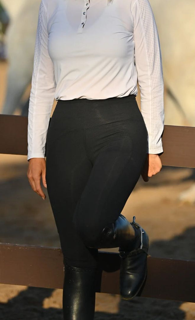 Callidae Women's Knee Patch Riding Tights Leggings with Pocket - Black / Size Small