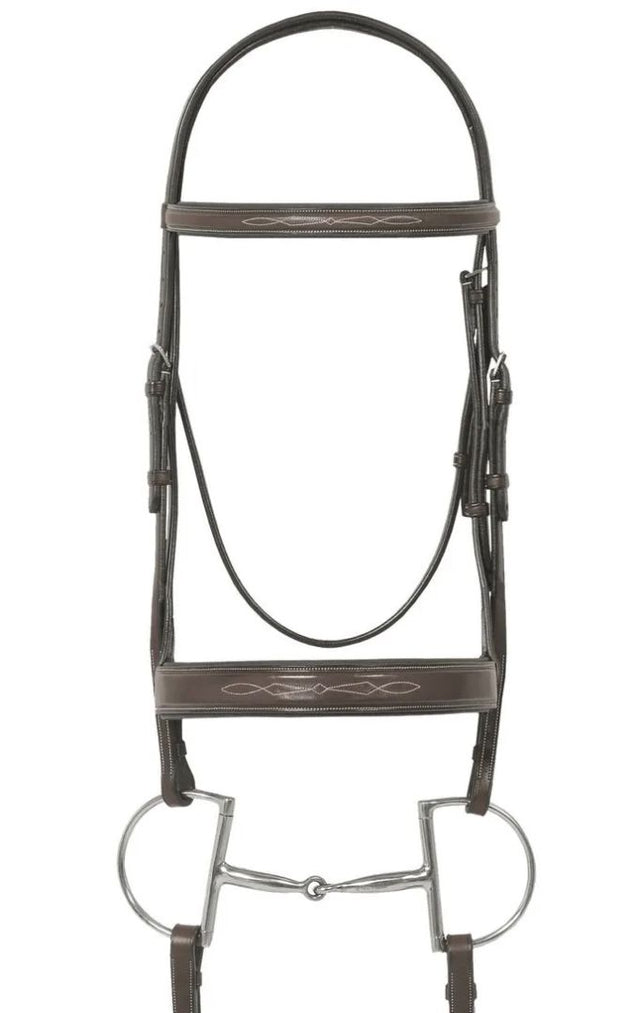 Ovation Elite Fancy Raised Flat Wide Noseband Traditional Crown Dark Brown Full Size - (No Reins)