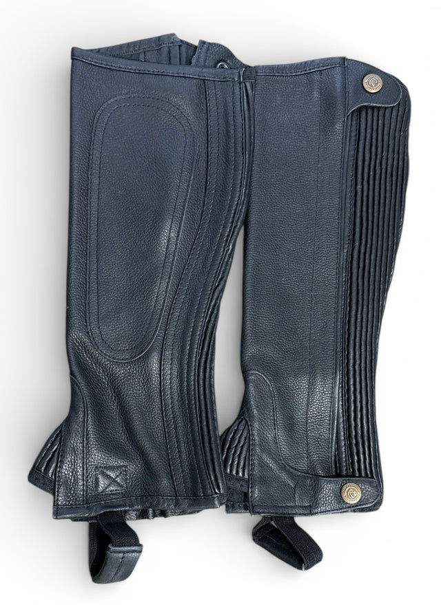 Perri's Professional Child Leather Zip Half Chaps - Black Youth Large Calf /Tall NEW