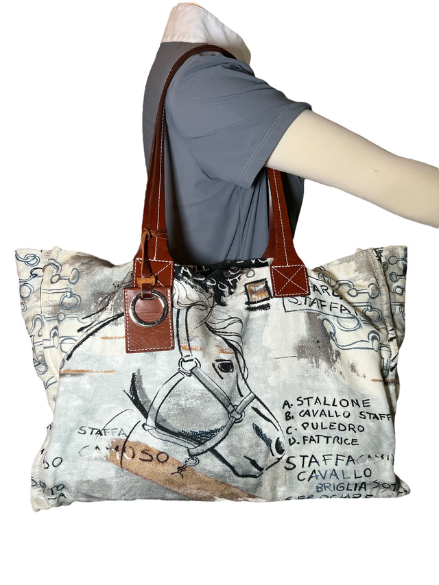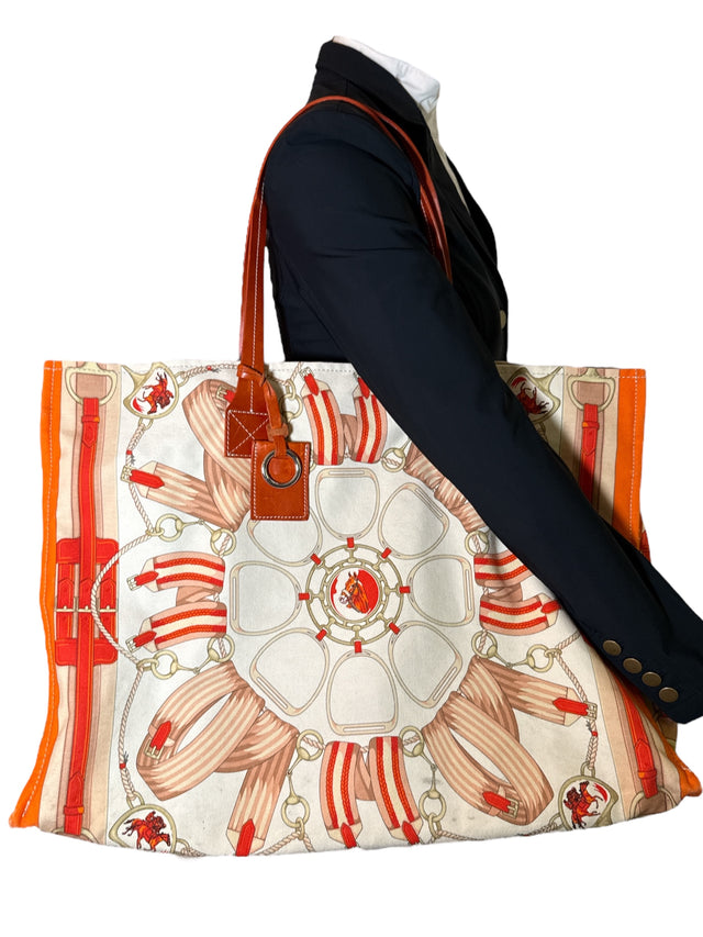 Rani Arabella Orange Stirrups East-West Canvas Tote Bag / Large