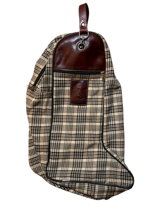 5/A Baker Plaid Riding Boot Bag - Brown