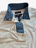 This children’s show shirt is impeccably tailored with a tapered fit to ensure a smooth look under a show jacket. Long shirttails keep it neatly tucked. The covered half-placket and wrap collar with hidden snaps present a traditional look in the show ring, and fashionable print linings inside the collar, placket and cuffs add a fun pop of color when classes are over. Finished with an embroidered contrast colored logo.