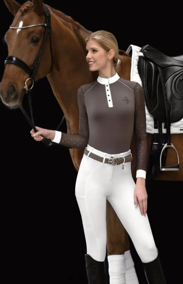 Fair Play Women's Lorella Long Sleeve Competition Shirt - Beige/White XXXL