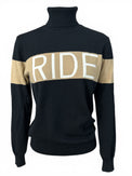 Dancing Equestrian RIDE Performance Wool Turtleneck Sweater - Black & Tan / Size Large