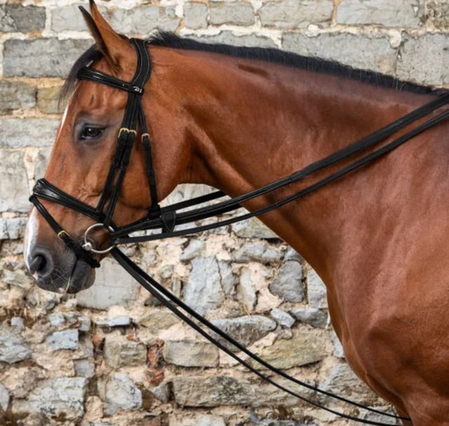 Dy’on D Collection 5/8" Leather/Nylon Draw Reins, Black Full Size Brand New