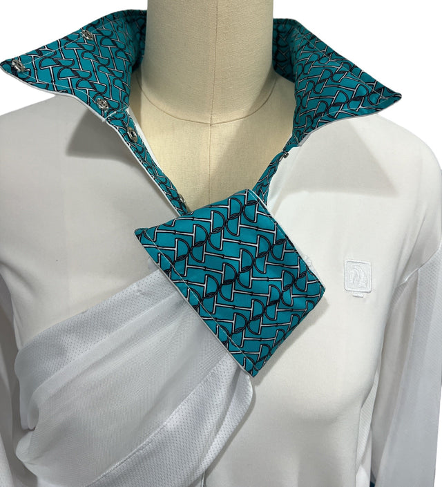 ROMFH Women's Stephanie Long Sleeve Show Shirt - Size Large White/Teal Bits NEW