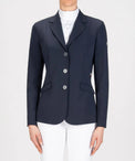 As our most traditional show coat, the HAYLEY is particularly suited for the Hunter or Equitation discipline. The coat is cut slightly longer than a standard competition jumping jacket and is tailored for a very flattering fit. The lightweight feel makes it ideal for equestrians competing in hot weather climates. Additional features include discreet branding, double vent in back, faux flap pockets in the front and flat matte buttons.