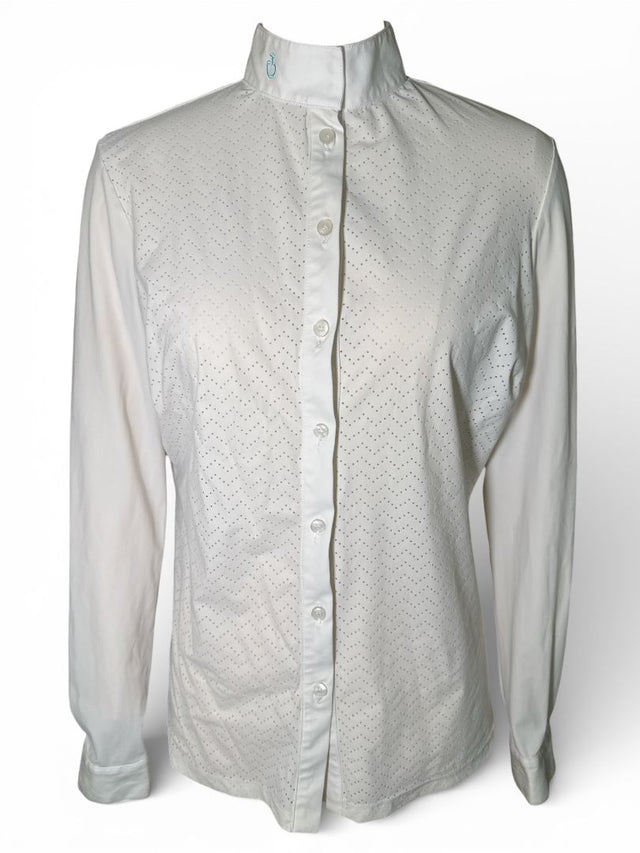 Cavalleria Toscana Women's "Wave" Long Sleeve Perforated Show Shirt - White / Size Large