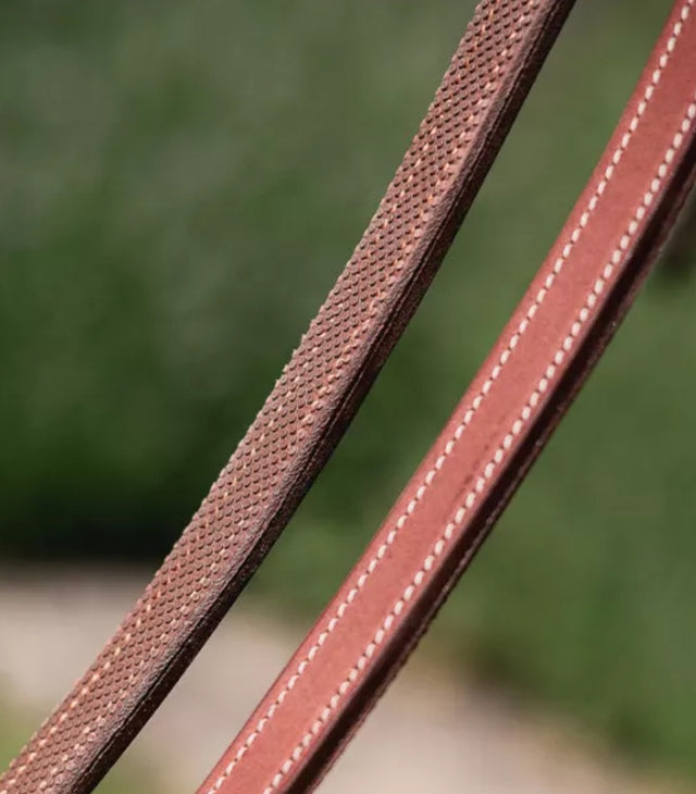 Beval Fancy Stitched Raised Laced Rein 5/8 - Dark Brown -Horse
