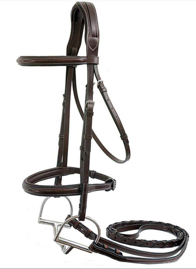 Eggbutt Snaffle Gag Bit with Leather Cheek Pieces - 5 1/2"