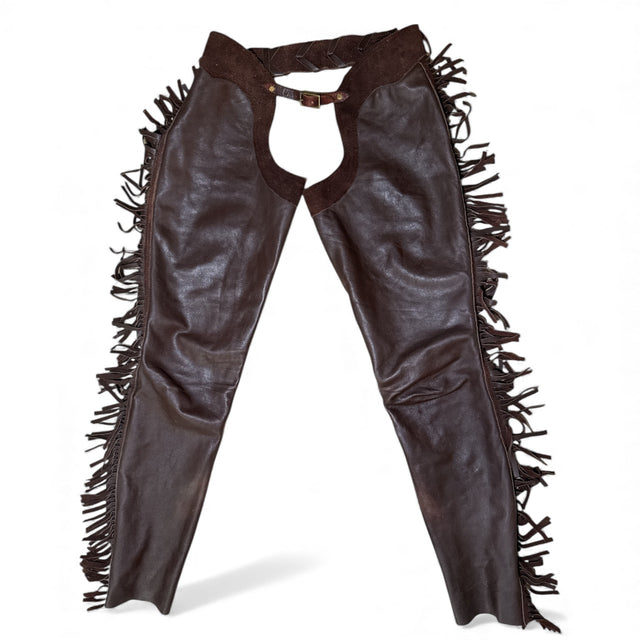 Custom Women's Brown Fringe Leather and Suede Full Chaps - Size US 24/26 (Small)