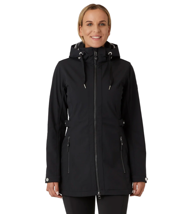 Horze Freya Women's Long Soft-shell Waterproof Riding Jacket - Black / Size Small