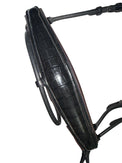 Black Leather bridle featuring an extra soft padded noseband in shiny black croco print & dark brown leather underneath
